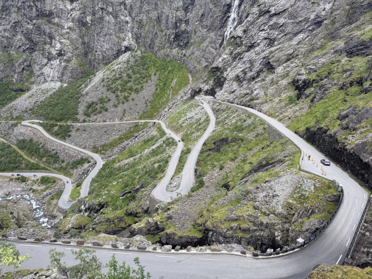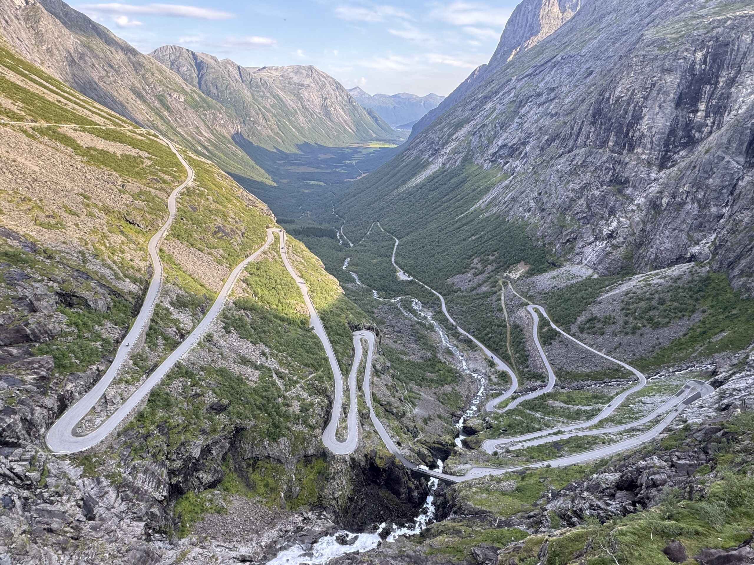 Day 6 blog. 392 km riding time 6 hours 18 minutes. From Trollstigen camping to Malvik. We decided on an early start to ride back up the trollstigen pass for breakfast, this gave us the opportunity of some more photos before riding back down. The sun was shining when we left the campsite, a novelty